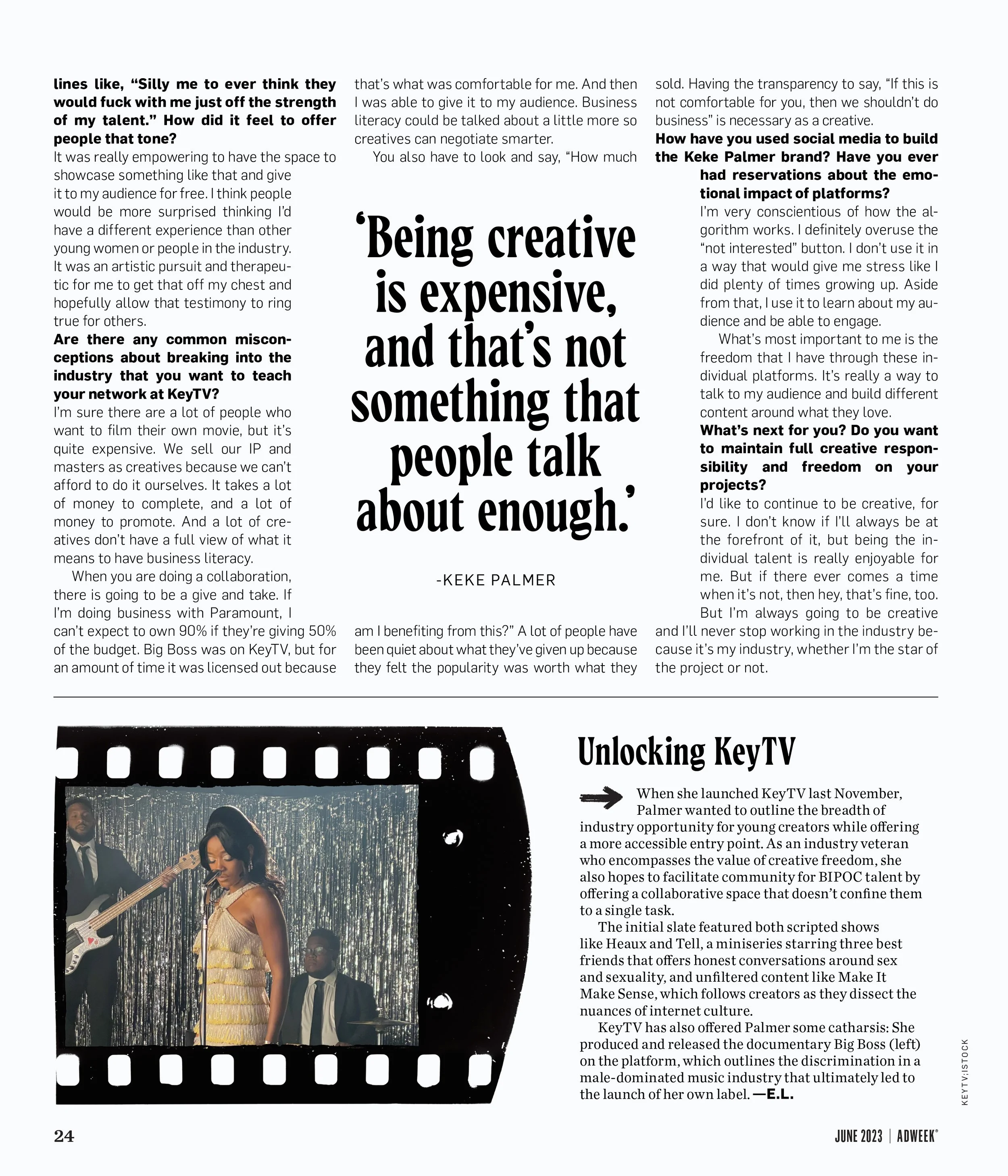 For the June 2023 issue of Adweek I was responsible for designing the cover feature titled, “Queen of Creativity” which highlights actress Keke Palmer’s impact on the advertising industry via her presence on social media as well as her new digital platform, KeyTv, where she spotlights the next generation of diverse talent.